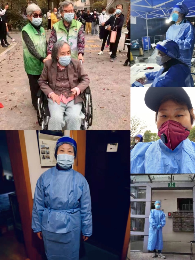 老党员郑国桢日夜为封控区的居民们服务。 她的儿媳是防疫一线的检测员,白天穿着白大褂为大家做核酸检测,晚上婆媳二人一起做志愿者为大家服务,他们的事迹在社区传为佳话,成为街道的模范“婆媳”。