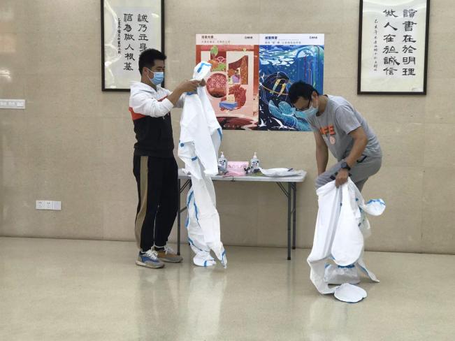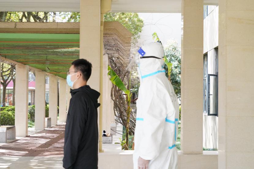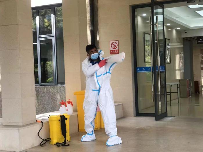 医中心配合区疾控开展环境取样和环境消杀。区CDC工作人员进入第一教学楼,依次上门对楼宇内人员进行核酸检测,同时对所涉区域进行环境采样。环境采样完成后,对相关区域进行全面消杀。