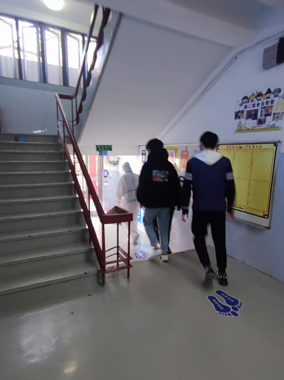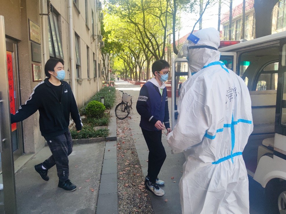 在核酸检测异常人员乘防疫专车就医的同时,学校防控办通知学生处、学工部、楼宇物业和相关学院立即梳理2号楼全体人员名单,通过相关学院联系召回楼内人员。接到召回电话的学生配戴好口罩,陆续返回2号楼寝室。学生处将相关名单信息报送校防控办,同时提醒学生按要求做好个人防护,在个人寝室内等候下一步通知。配合区CDC做好密接、次密接人员流调。