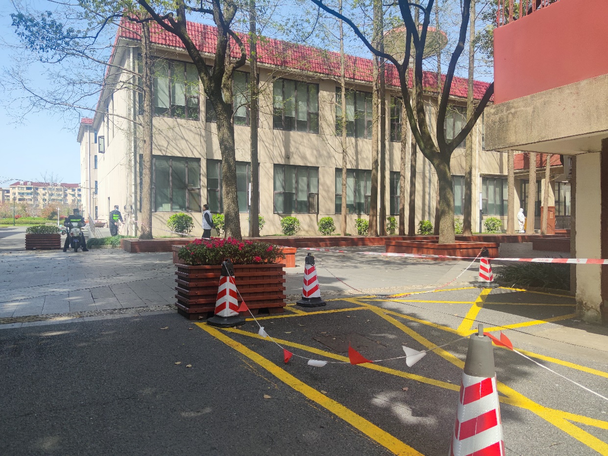 在区CDC的指导下,学校防控办立即通知对该名学生所在的第一教学楼封闭管控。保卫处工作人员拉起警戒线、布置隔离带,对第一教学楼进行封控管理,同时配备24小时值守人员做好管理。另一名工作人员在第一教学楼门口张贴告示“根据疫情防控要求,该楼宇将进行环境和人员筛查,自今日起实行7天封闭管理,封闭管理期间不得离开楼宇,谢谢理解与配合。”