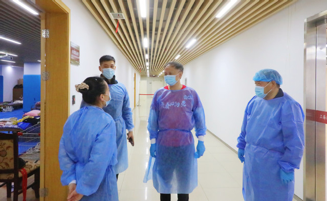 4月10日晚上八时许,上海财经大学党委书记许涛,校党委副书记朱鸣雄一行来到国定路综合体育馆慰问校园疫情防控青年志愿者突击队。
