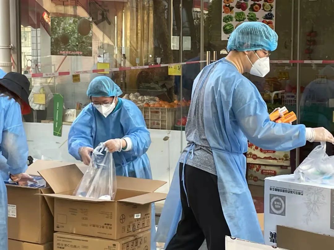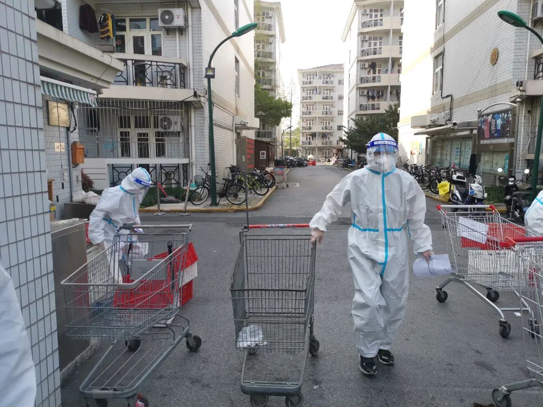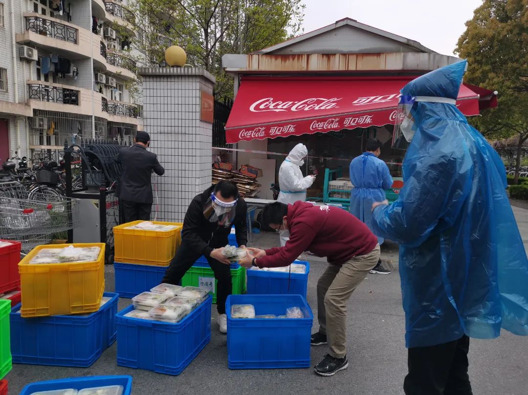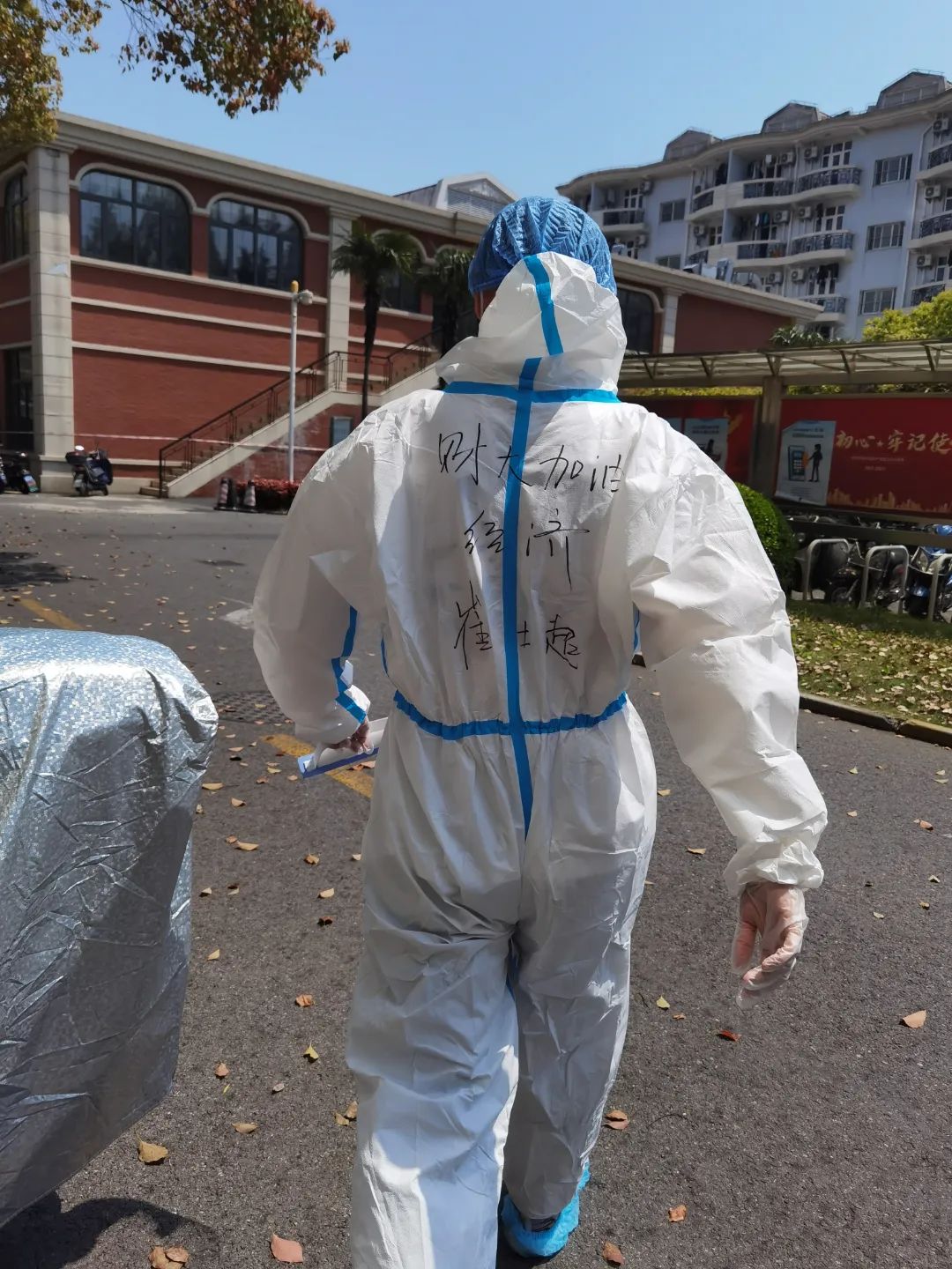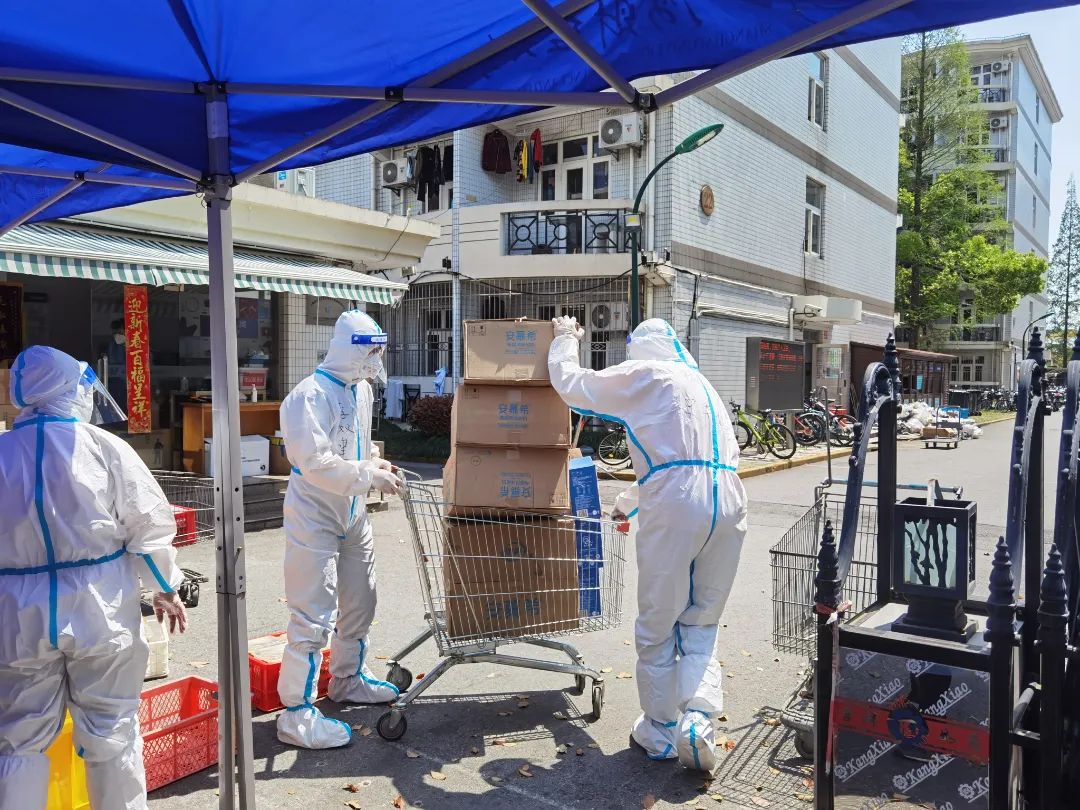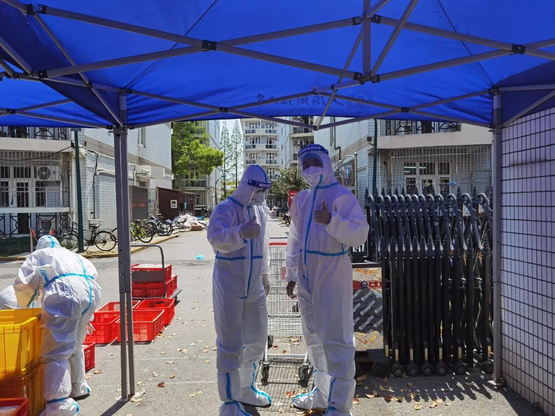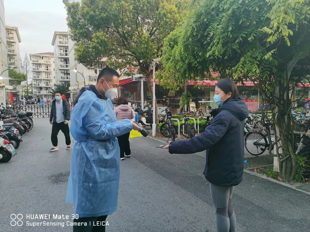 在三门路周转房居住的师生,也纷纷穿上防护服,加入志愿者队伍