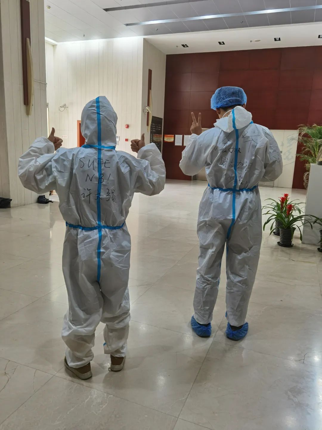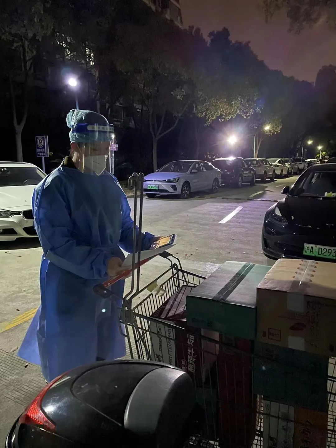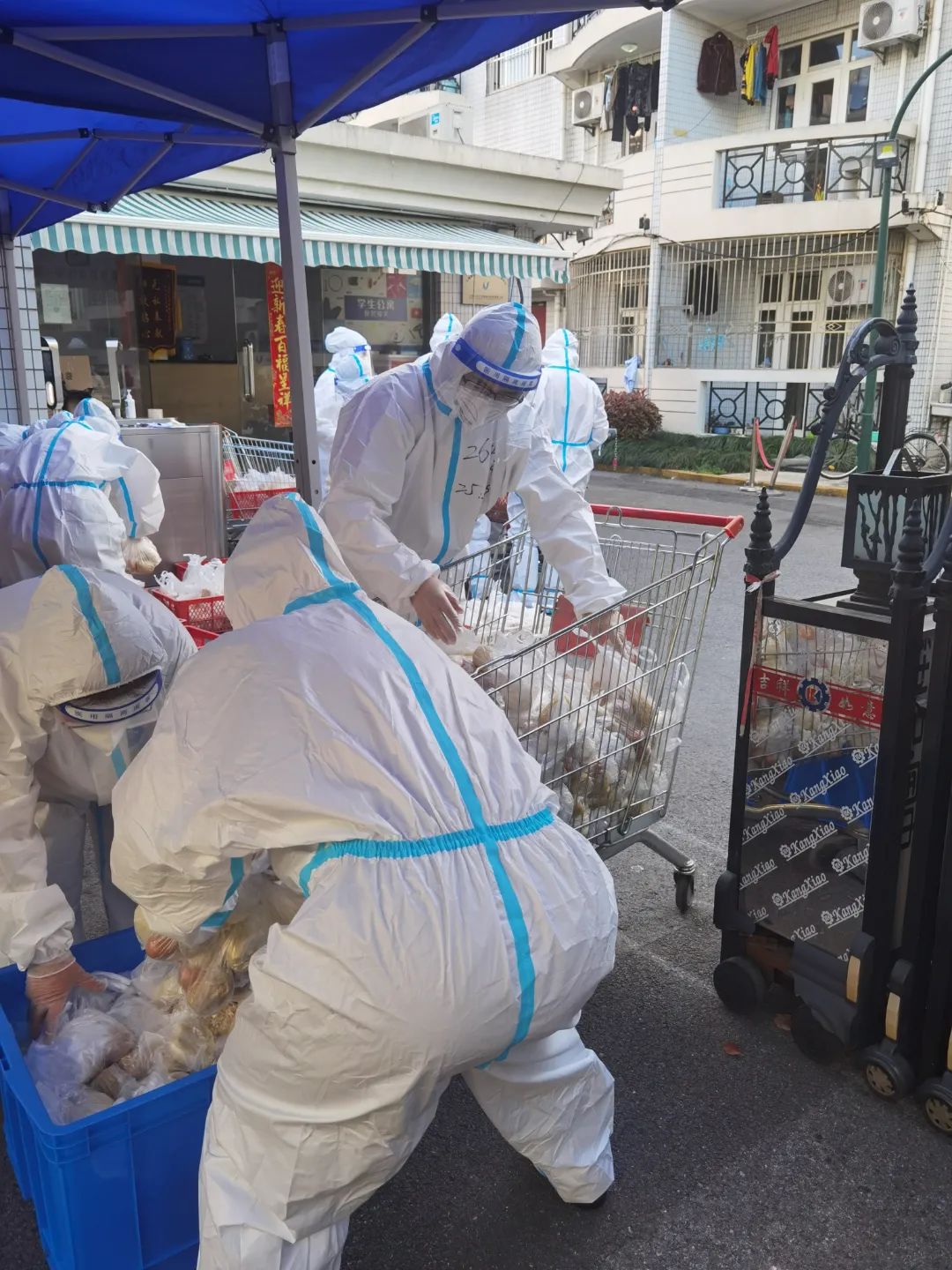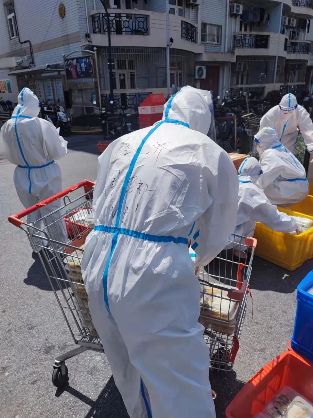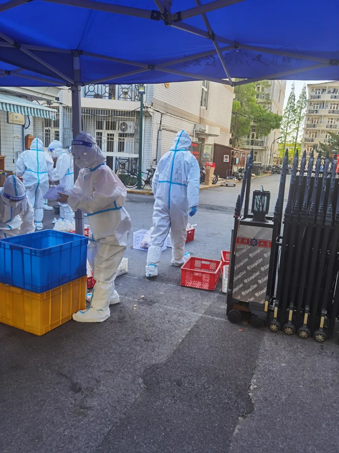 在三门路周转房居住的师生,也纷纷穿上防护服,加入志愿者队伍