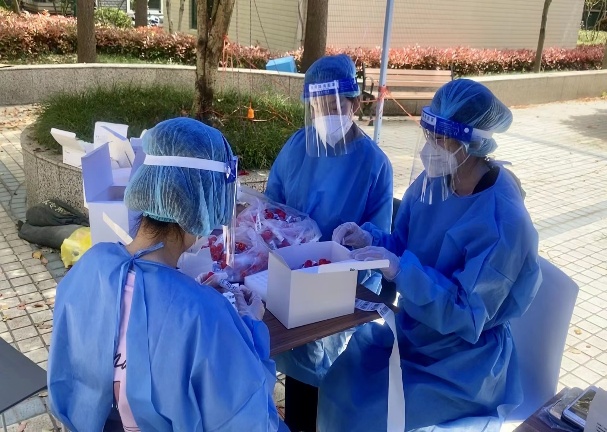 4月5日,副校长姚玲珍带队进驻园区,第一时间组建工作专班,压实责任,靠前指挥。在专班的组织协调下,组建起联络协调、数据收集、物资接收和分拣、三餐及物资配送、教职工志愿者先锋队管理、核酸及抗原检测安排等多条线工作组。来自学校13个学院、部(处)、后勤实业发展中心的21位同志建立起了临时党支部的雏形,大家挺身而出、冲锋在前,扛起责任、拿出担当,在各个条线多日奋战,全力战疫,确保各项防控措施再细化再落实。