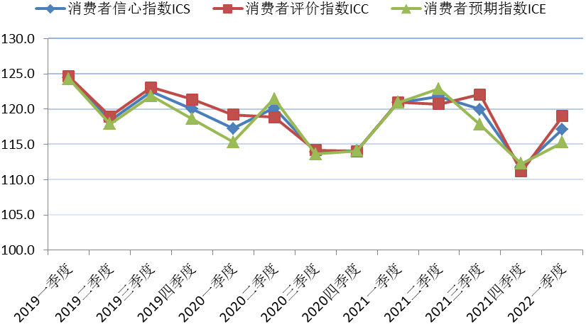 二、2022年第一季度上海市消费者信心指数为117.1点,环比上升5.4点,同比下降3.8点,指数处于乐观区域较高点位。