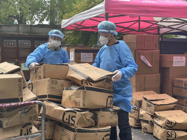 为做好园区的物资保障工作,物资组志愿者每天将校内外接收的物资进行清点、装运,并配送至仓库;遇到蔬菜生鲜类食品,则第一时间将物资配送到楼。在物资转递最充足的时候,志愿者每天要负责4批次的装卸和搬运工作,其中不乏大件货品,需要连续奋战3个多小时才能完成近1000件物资的转运。无论是烈日炎炎,还是风雨交加,抑或是披星戴月,志愿者都毫无怨言、齐心协力、义无反顾,实保障园区战略物资储备的持续性。