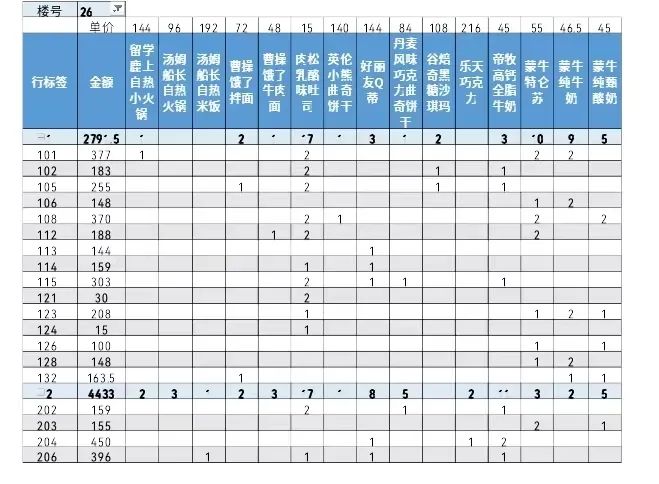 为使团购工作高效、顺利,片区设计了订货信息收集小程序,在线实时高效地收集学生订货需求,对订单数据进行多维汇总处理,并以最佳可视效果打印各种报表,方便层团长、楼团长、园区团长、收货团长和发货团长们有序、高效的收货、点货、发货,用很短的时间精准地将学生们心心念念的美食分发到位。圆满完成任务的同时,年轻人也有成长的收获,很多辅导员和学生志愿者感叹又上了一次“经管机”的课程。