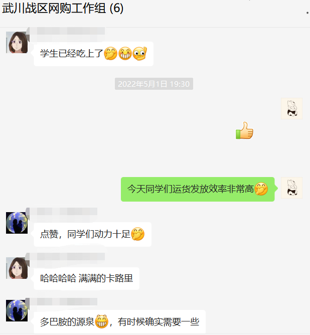 学院的老师们虽身处不同校区,但始终心系一起、同频共振,用自己的汗水见证着校内情况一天天好转。即便身处家中的老师们,也时刻关心着校内情况,他们不仅在课堂内外关心着同学们的思想动态、情绪管理,也常在群中为校内的战友们打气加油。正是如此团结的集体,才能让大家一起坚持、坚守到现在,等待着战疫胜利那一天的到来!