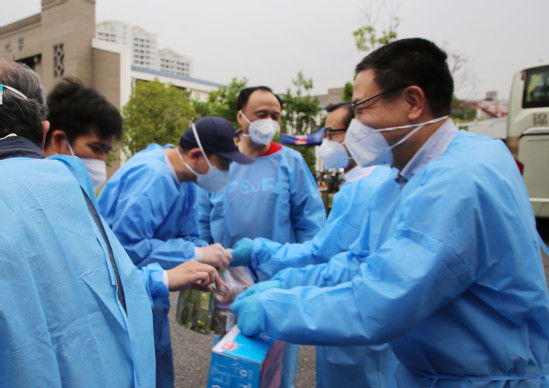 5月26日下午,校领导许涛、刘元春、徐飞、刘兰娟、方华、陈信元、姚玲珍、朱鸣雄,校长助理李增泉,校党委常委、组织部部长刘庆生分头走访慰问各校区抗疫一线教师志愿者,对他们迎难而上、坚守一线的师者担当和为学校疫情防控工作所作出积极贡献表示肯定,并代表全体师生员工对他们的辛苦付出表示衷心感谢。