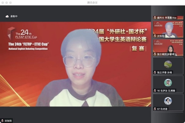 队员们遨游学海,激荡思维,强健心智,持续的努力换来了丰硕的成果。4月8日至10日“第24届‘外研社·国才杯’全国大学生英语辩论赛”分别在线上举办了华北、华东地区复赛,共有214所高校派出代表队参赛。经过激烈比拼,华东赛区复赛中,上海财经大学获得冠军(张佳艺2019级商英、沈张阳2020级商英),浙江师范大学获得亚军,同济大学和上海对外经贸大学获得季军。