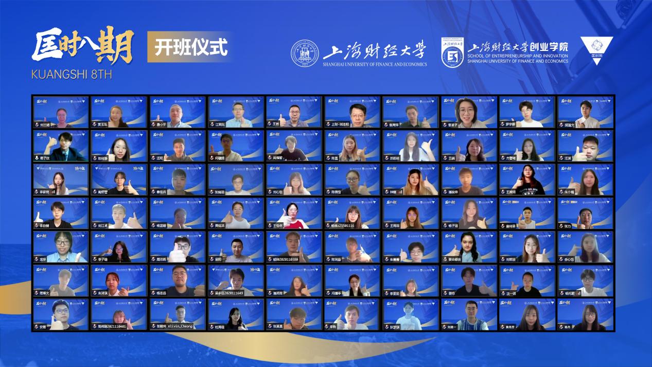 在大赛举办期间,同时进行了创业学院第八期匡时班开班仪式。匡时班是我校创新创业型人才培养的重要载体,是上海财经大学大学生双创的引领者,在企业创办和各类竞赛中都取得良好成绩。据悉,今年将有60余名同学加入第八期匡时班,进行为期近一个月的课程和实践训练。本期匡时班将围绕“产业赛道命题”、“乡村振兴”和“元宇宙创业”三大任务展开。众多企业家、风险投资人、校友和我校专家将全程参与匡时班课程和实践指导,共同助力学生成长。