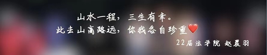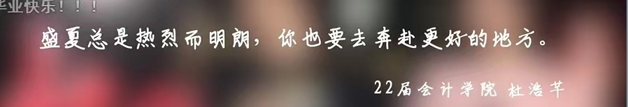 记忆的时光机着陆在了离别之际,岁月把青春谱写成了一首歌,裹挟着一切珍贵的记忆匆匆而去,而更值得期待的美好未来即将迎面而来。相信所有的上财毕业生必将记住在校学习生活的点点滴滴,和其中流淌的上财精神、上财情怀,在社会的每一个岗位上,在广袤的青春赛道上,昂首向前,奋力奔跑,跑出属于当代青年、属于上财青年的最好成绩!