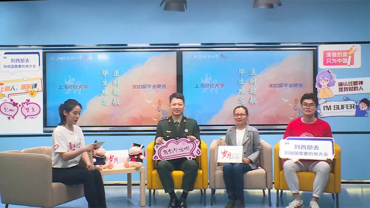 “匡时会客厅”里,援疆教师、会计学院孙红星副教授和即将奔赴西部的第24届研究生支教团成员朱逸成同学,上海市选调生、应届退伍大学生郑天昊同学,一同重温了“强国有我,匡时有我,一切为着建设祖国”的上财传承。孙红星老师从父母和自己的援疆经历出发,期冀毕业生们能够奔赴祖国各地,赴鹏程万里之约;而两位应届毕业生则真切表达了自己做出毕业人生选择时的心路历程,与广大毕业生们以“厚德博学 经济匡时”的校训许下铮铮人生誓言。