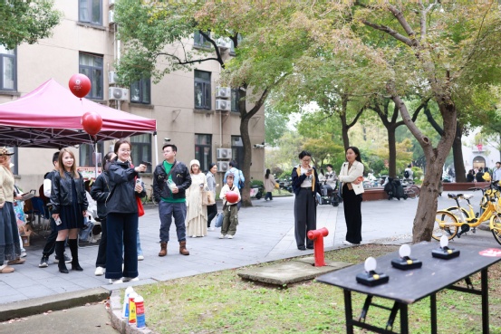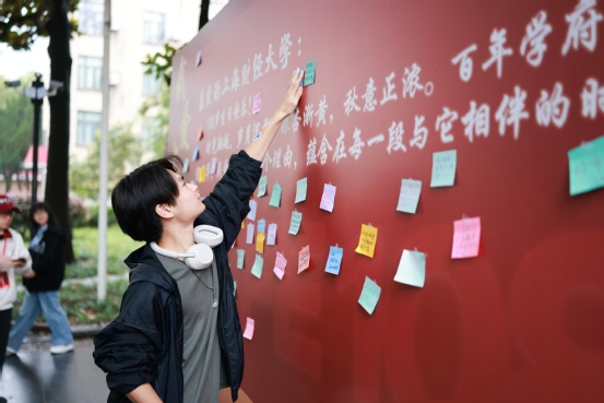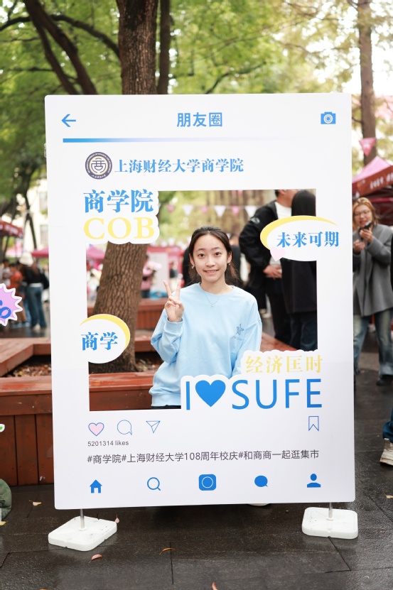 游园之外,绿叶步行街的趣味打卡点更添惊喜——校园热搜榜带你一键捕捉最新动态、紧跟潮流节奏;“我爱上财的108个理由”展板邀你用便利贴写下独家故事、诉说专属热爱;校友签到墙以拉线签到定格“回家”瞬间,让不同届次的上财人通过轨迹分享联结情谊;还有专属拍照打卡框,定格笑脸与欢乐,留存与母校的珍贵合影。