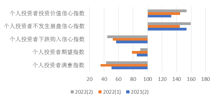 (四)2022年第二季度上海市个人投资者信心指数为98.15点,环比上升7.09点,同比下降11.09点,指数仍在中性值100点以下,处于悲观区域。