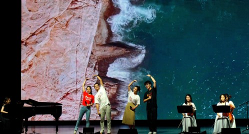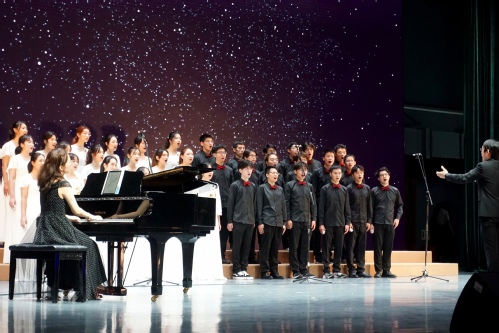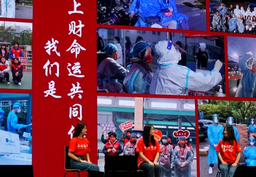 晚会在悠扬深情的合唱《凡星》中,进入了第二篇章,一步步讲述上财人平凡而又不平凡的奋斗。学生合唱团以歌声诉说世界那么多人,而人人都可追逐那天上最亮的星。随后,教师志愿者、后勤人员代表与学生志愿者代表再度携手,共同演绎的《你我并肩》以舞台剧的形式展现了疫情之下上财师生紧密团结成命运共同体,共抗疫情的生动故事。而防疫志愿者师生代表合唱的《平凡的一天》唱出了普通平常里的真情实感,也充分展现了上财师生携手并肩,奋勇向前的每一天,感动了屏幕前后的每个人。