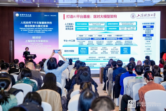 11月14日至16日,2025世界中文大会在北京国家会议中心举行。本次大会由中国教育部主办,教育部中外语言交流合作中心、中国国际中文教育基金会、世界汉语教学学会共同承办,大会主题为“创新引领 数智赋能——让中文零距离”。上海财经大学姚玲珍副校长应邀出席大会,并在11月15日“线上线下融合的无边界中文学习生态构建”研讨会上发言。