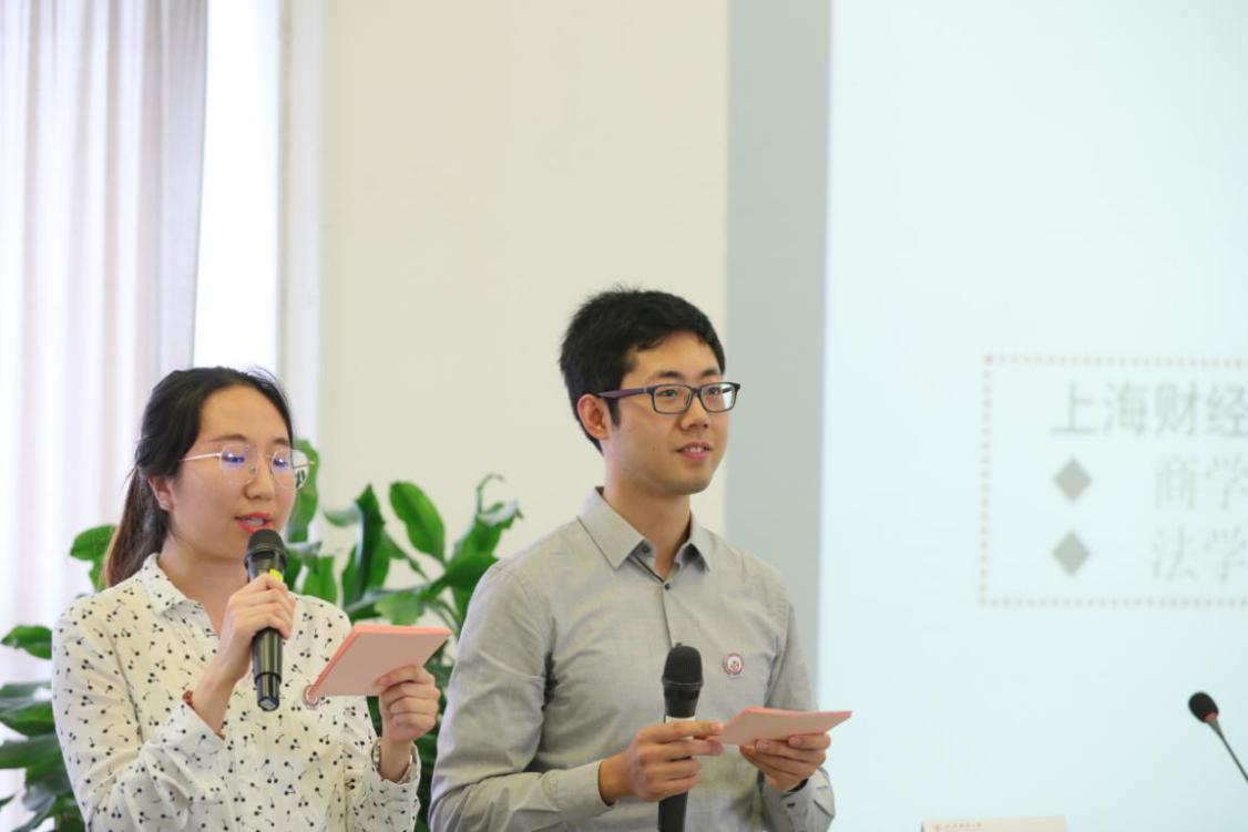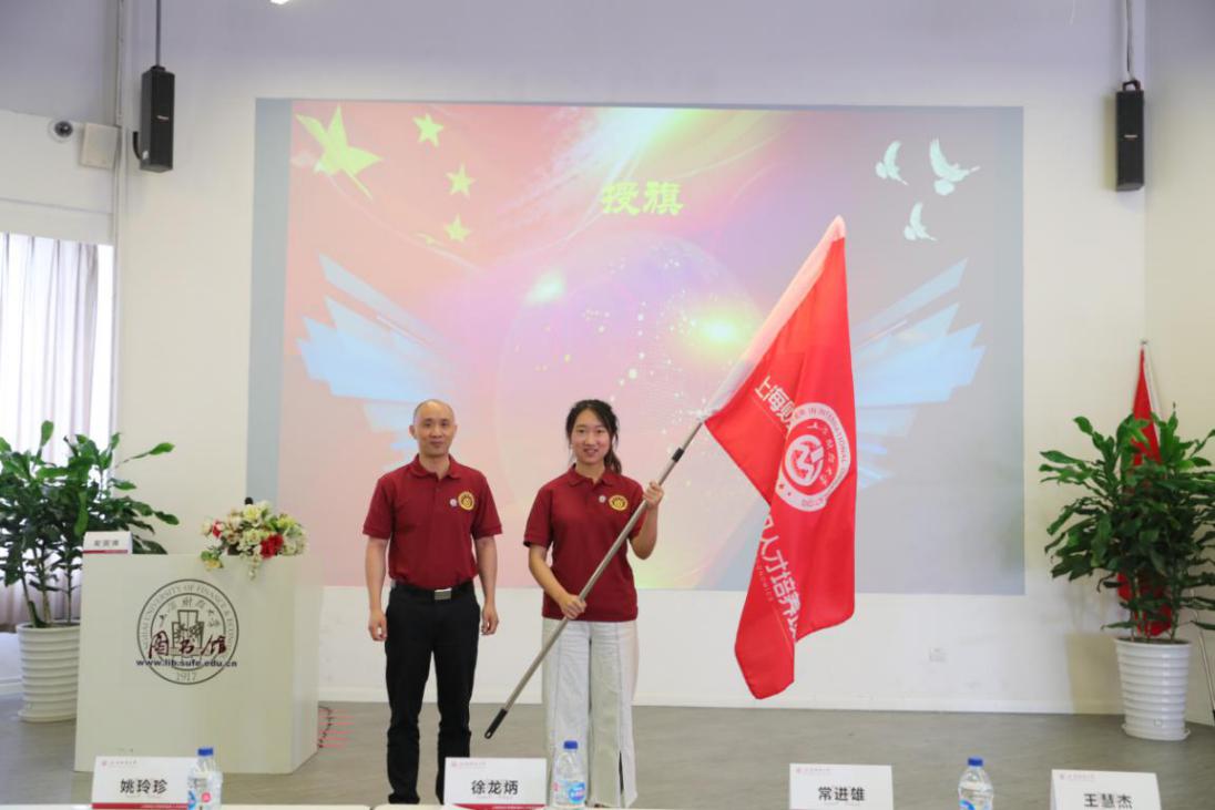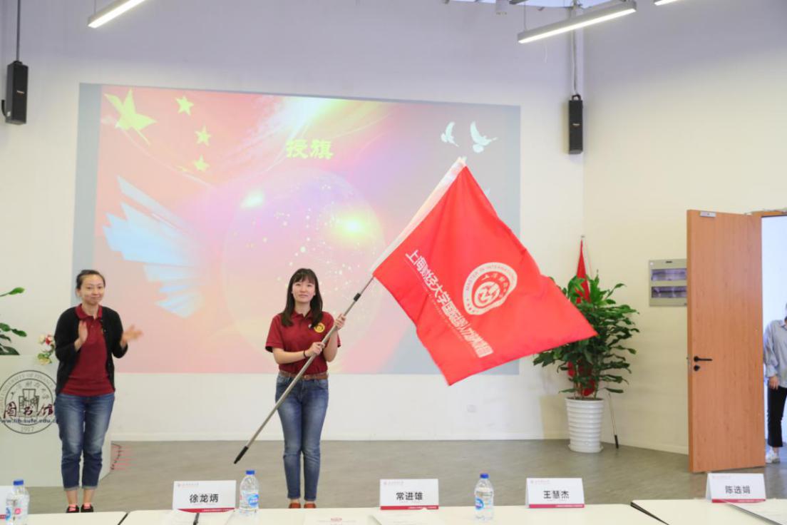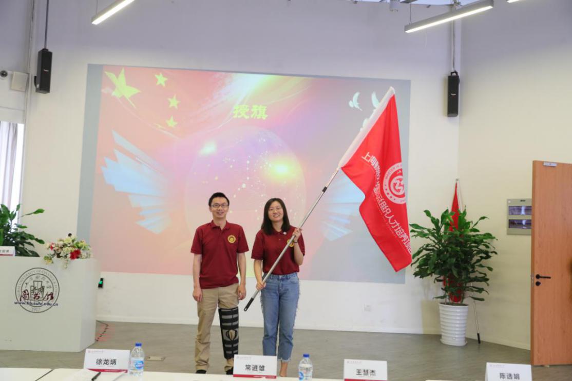 上海财经大学党委学生工作部/研究生工作部部长褚华老师、研究生院副院长李劲松教授、会计学院副院长曾庆生教授、法学院院长助理吴文芳副教授分别为金融学院、经济学院、会计学院、商学院及法学院四期学生代表授旗。
