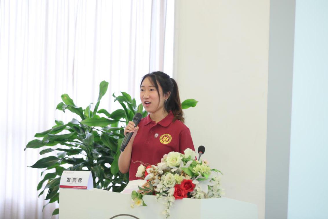 四期学生代表金融学院孟小荷同学在发言中分享了项目一年以来的点滴感受,表达了对学长学姐前程似锦的衷心祝愿,对母校和项目的衷心感谢。她表示,将在未来的项目学习中继续努力后,实现梦想,不负期待。四期学生代表在主持人的带领下,集体起立,庄严宣誓:成为国际组织人才培养项目一员,为参与全球治理、发出中国声音,奉献青春和智慧,共同建设伟大的祖国。