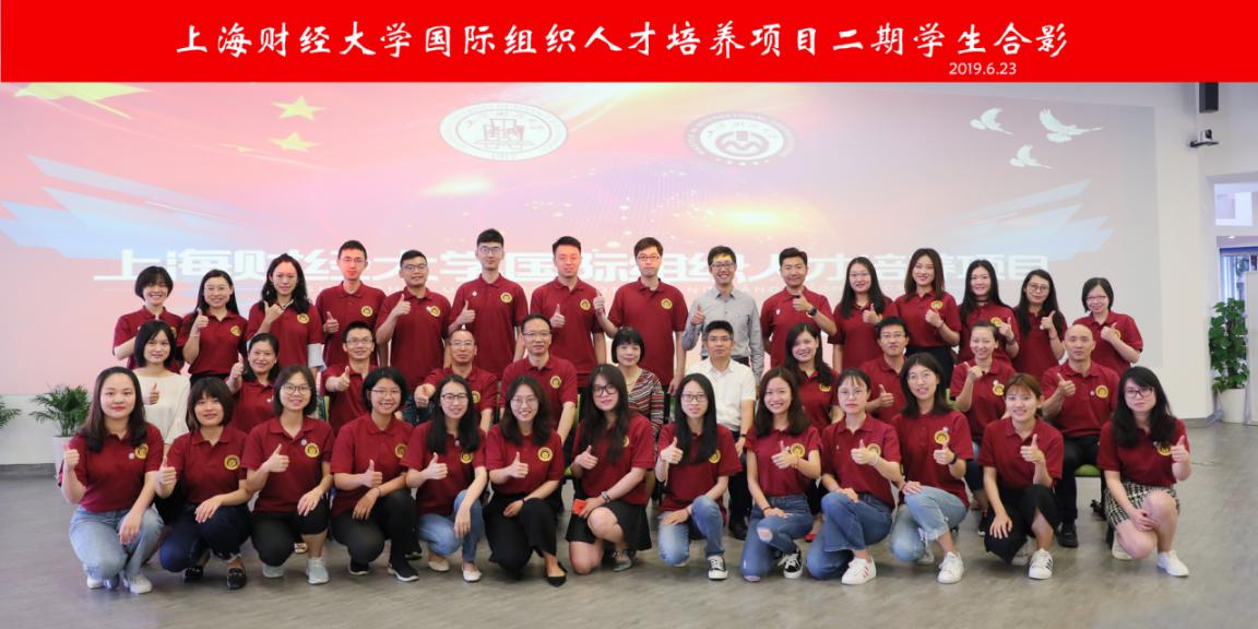 上海财经大学国际组织人才培养项目授证仪式在热烈温馨的气氛中结束。一期、二期项目学生纷纷在合影板处合影留念。
