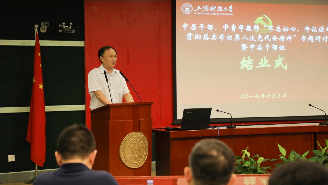 7月3日下午,学校中层干部、中青年干部教师“不忘初心、牢记使命,贯彻落实学校第八次党代会精神”专题研讨会暨中层干部研修班结业式在行政楼一楼报告厅举行。校党委书记许涛,党委副书记陈宏,党委副书记朱鸣雄,党委常委、组织部部长刘庆生,党委常委、宣传部部长章益国以及学校中层干部和2019年中青班学员出席。党校副校长、组织部副部长曹东勃主持会议。