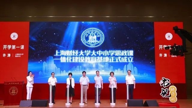“开学第一课”不仅有上海财经大学的新生们,还有上财附属杨浦区国安路小学、上财附属初级中学、上财附属中学以及上财附属北郊高级中学的师生代表。现场还举行了上海财经大学大中小学思政课一体化建设教育基地成立仪式。