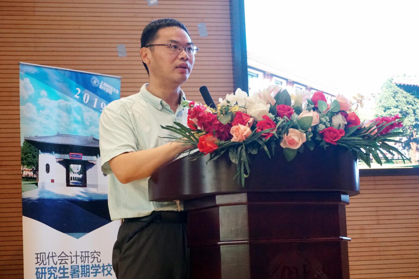会计学院院长靳庆鲁代表学院对同学们的到来表示热烈欢迎,他表示会计学科在上海财经大学成立之初就已经设立,并且在100多年的发展中形成了面向世界、扎根于中国实践的学科发展特色。他还表示暑期学校的举办目的有三,一为培养会计学科人才,推动中国会计学科研究范式发展;二为搭建研究生研讨平台,全面提升青年对重大理论和社会变革的应对能力;三为共享上财会计学科研究成果,拓展学科社会服务功能,资政启民。