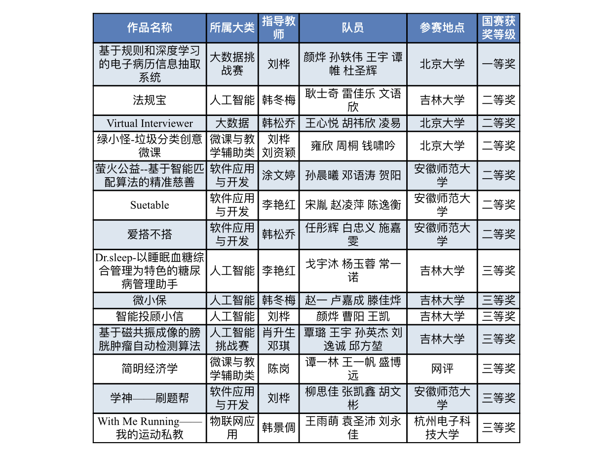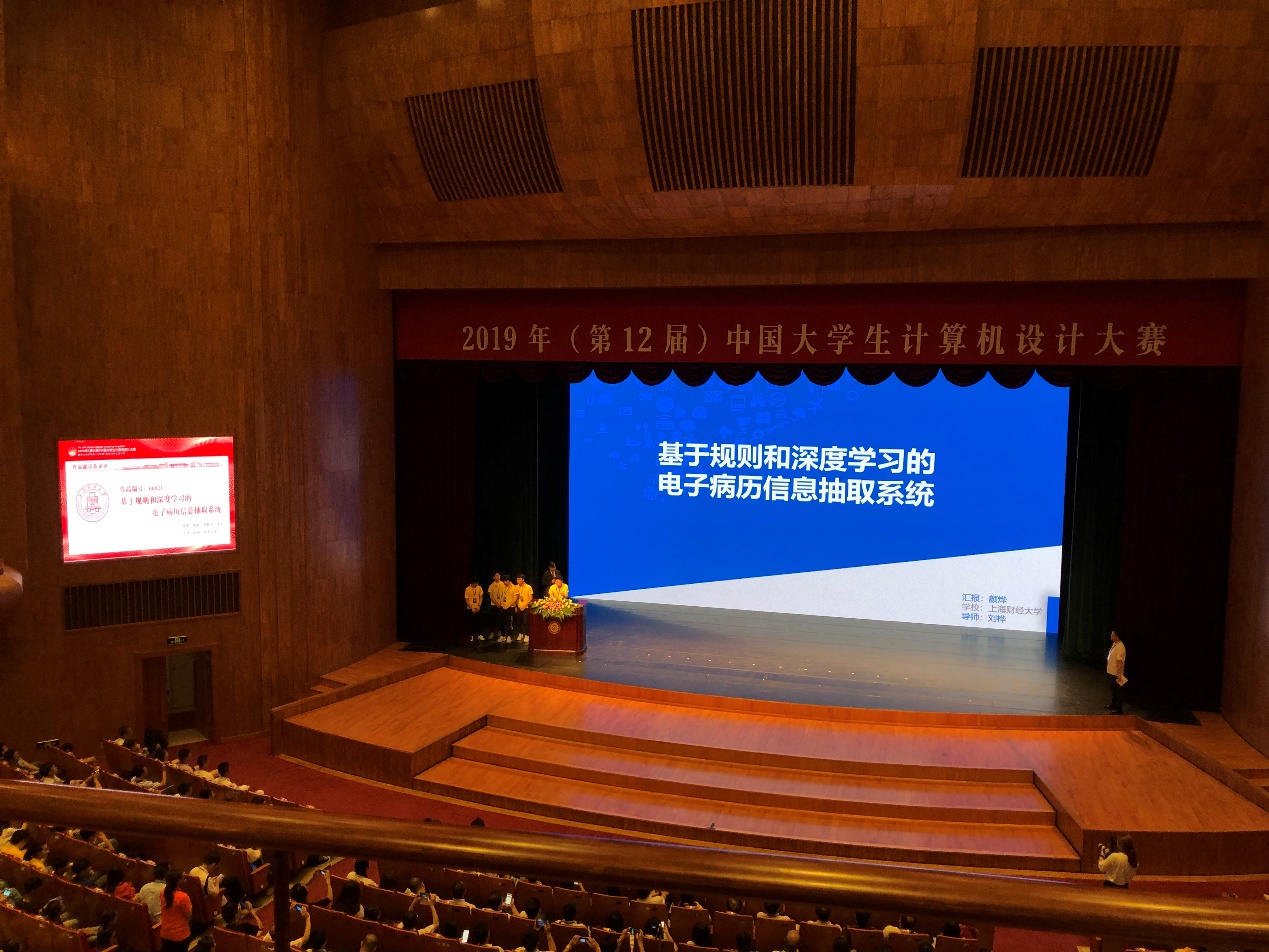 8月22日,第12届中国大学生计算机设计大赛物联网应用类决赛在杭州电子科技大学落下帷幕,标志着我校在本年度国赛赛程的结束。我校继2017年第10届中国大学生计算机设计大赛优秀组织奖之后,再度荣获第12届中国大学生计算机设计大赛优秀组织奖。我校46名学生在信息管理与工程学院韩冬梅、韩景倜、赵宇辉、刘资颖4位老师带领下参加了人工智能、大数据、微课与教学辅助、软件应用与开发、物联网应用5个大类的角逐,取得了一等奖1项、二等奖6项、三等奖7项的好成绩,其中颜烨、孙轶伟、王宇、谭帷、杜圣辉的一等奖获奖作品《基于规则和深度学习的电子病历信息抽取系统》,以及耿士奇、雷佳乐、文语欣的二等奖获奖作评《法规宝》还作为优秀作品入选“作品点评”环节向各省市参赛选手们进行展示,进一步彰显了学校信息科学、数据科学、计算机科学人才培养的成果。