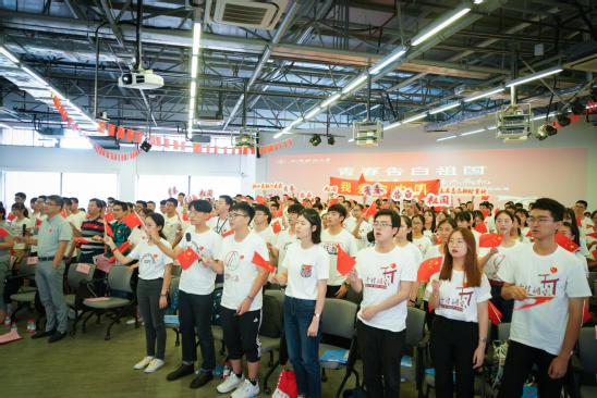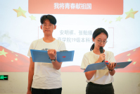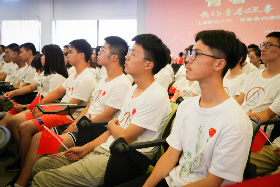 在青春奉献祖国篇章,4名2019级新生做了发言,分享了他们的中国梦、大学梦。来自数学学院的本科生范新雨说,中国梦与我们每一个人息息相关,我们每一个人都要把实现中国梦放在心间。公管学院的本科生甘嘉晖说,我们的大学梦其实就是我们的民族梦,我们中华民族伟大复兴的中国梦。来自商学院的本科生张贻瑾和安明祺表达了上财学子把青春奉献给祖国的志向。