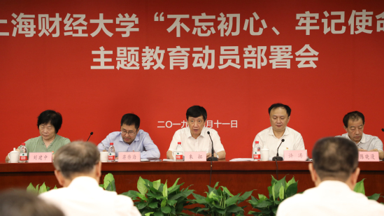 9月11日上午,上海财经大学召开“不忘初心、牢记使命”主题教育动员部署会,深入学习贯彻习近平总书记关于“不忘初心、牢记使命”主题教育的重要讲话和重要指示批示精神,严格按照中央关于第二批主题教育的总体要求和教育部党组的部署要求,对全校主题教育进行全面动员与重点部署。我校主题教育领导小组组长、校党委书记许涛主持会议并作动员部署。教育部直属高校主题教育第六巡回指导组组长朱拓出席会议并讲话。主题教育第六巡回指导组副组长刘建中及其他组员到会指导。教育部党建工作联络员陈晓漫出席会议。