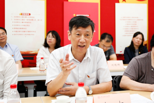 然后,朱鸣雄回顾了学校近年来深入贯彻落实新时代思想政治工作要求开展的各项工作。在加强党对学校思想工作的领导,坚持马克思主义在学校的指导地位,配齐建强思政工作队伍,搭建书记谈心系列平台,打造“千村调查”思政工作精品项目,开设“经济中国”思政重点课程,深化“智库思政”的育人功能,发挥开学典礼、毕业典礼、荣休仪式等的思政教育功能,营造良好的育人环境等方面的创新性举措。