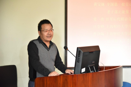 上海财经大学党委副书记、关心下一代工作委员会会长陈宏,杨浦区委组织部副部长、老干部局局长、关心下一代工作委员会常务副主任卜健,著名全国劳动模范、现任杨浦区“金色夕阳”老干部正能量工作室先锋组成员黄宝妹,红军后代联谊会上海分会会长邓玉平,上海财经大学关工委常务副会长毛荣生,上海财经大学信息管理与工程学院党委副书记周燕等出席座谈会。校关工委和各学院关工委分会成员、学生代表,红军后代联谊会上海分会成员等近百人参会。会议由毛荣生主持。