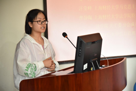 信息管理与工程学院学生薛照林在发言中与大家分享了她参加学校组织的大学生“千村调查”的经历,讲述了在党的“三农”政策和精准扶贫政策的指引下,广大农村所发生的喜人变化和巨大成就。她表示,一定要扎根祖国大地,为建设中国特色社会主义贡献力量。