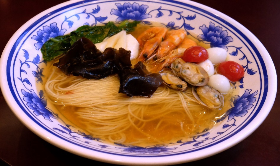 10月1日中午十一点不到,餐厅大堂就排起了长队,屋外的倾盆大雨也阻挡不住师生们的热情,新食堂充满了浓郁的节日气氛。短短一个小时,七百份喜面一售而空,大家赞不绝口,纷纷表示“这碗喜面味道真棒!”这碗面不仅吃出了国庆味儿,更吃出了上财后勤中心对师生们的那份真情。一碗色香味俱全的国庆喜面,饱含了上财人一脉相承的民族情怀。后勤人积极配合、用心筹备,共同商议制定喜面主题,餐饮部厨师团队对喜面的制作进行反复斟酌,从原料进取到浇头制作均秉承高标准、严要求、高质量的理念。