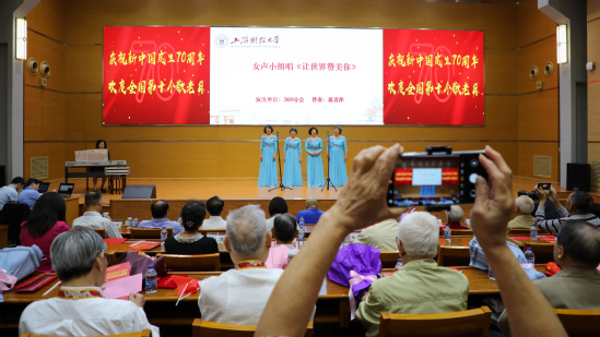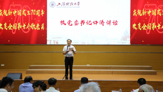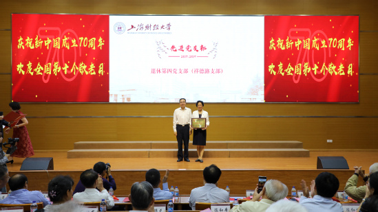 岁月如歌,为教育事业辛勤耕耘;鉴往知来,共祝愿祖国前程似锦。10月12日上午,校创业中心内锣鼓声声,热闹非凡,近400名离退休老同志聚集一堂,参加离退休党总支、离退休工作处举行的庆祝新中国成立70周年,欢度全国第10个敬老月表彰联欢活动。校党委书记许涛,党委副书记、校长蒋传海,常务副校长徐飞,党委副书记陈宏、朱鸣雄,党委常委、组织部部长刘庆生,党委常委、宣传部部长章益国,党委常委、统战部部长周杰普,部分学校离退休老领导以及学校有关部门、学院的负责人参加了活动。