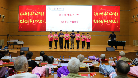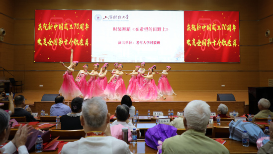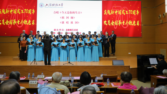 联欢活动的表演节目精彩纷呈,有排舞、时装秀、女声小组唱、诗歌朗诵、口琴独奏、京胡独奏、舞蹈等。最后亮相的是学校老教师艺术团的大合唱《今天是你的生日》和《祖国颂》,他们的歌声抒发了老同志对党的热爱、对祖国的深情,对幸福生活的赞美之情。