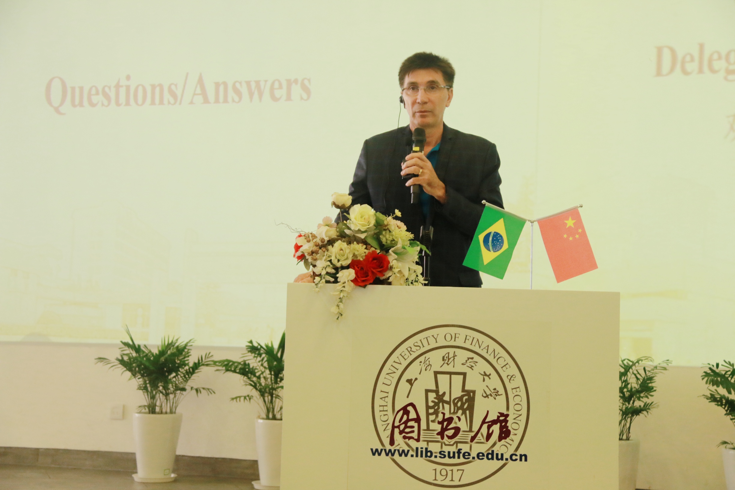 ABMES国际代表团副主席Jose Janguie Bezerra Diniz先生,同时也是巴西最古老的法学院的法学教授,他表示,在巴西法律职业是最负盛名的,因此他和他的同事们希望通过建立上海财经大学法学院与巴西大学之间的交流计划和合作关系以从中国的教育体系中学习经验。他邀请上海财经大学法学院访问巴西及其组织,该组织目前已有60所合作大学。