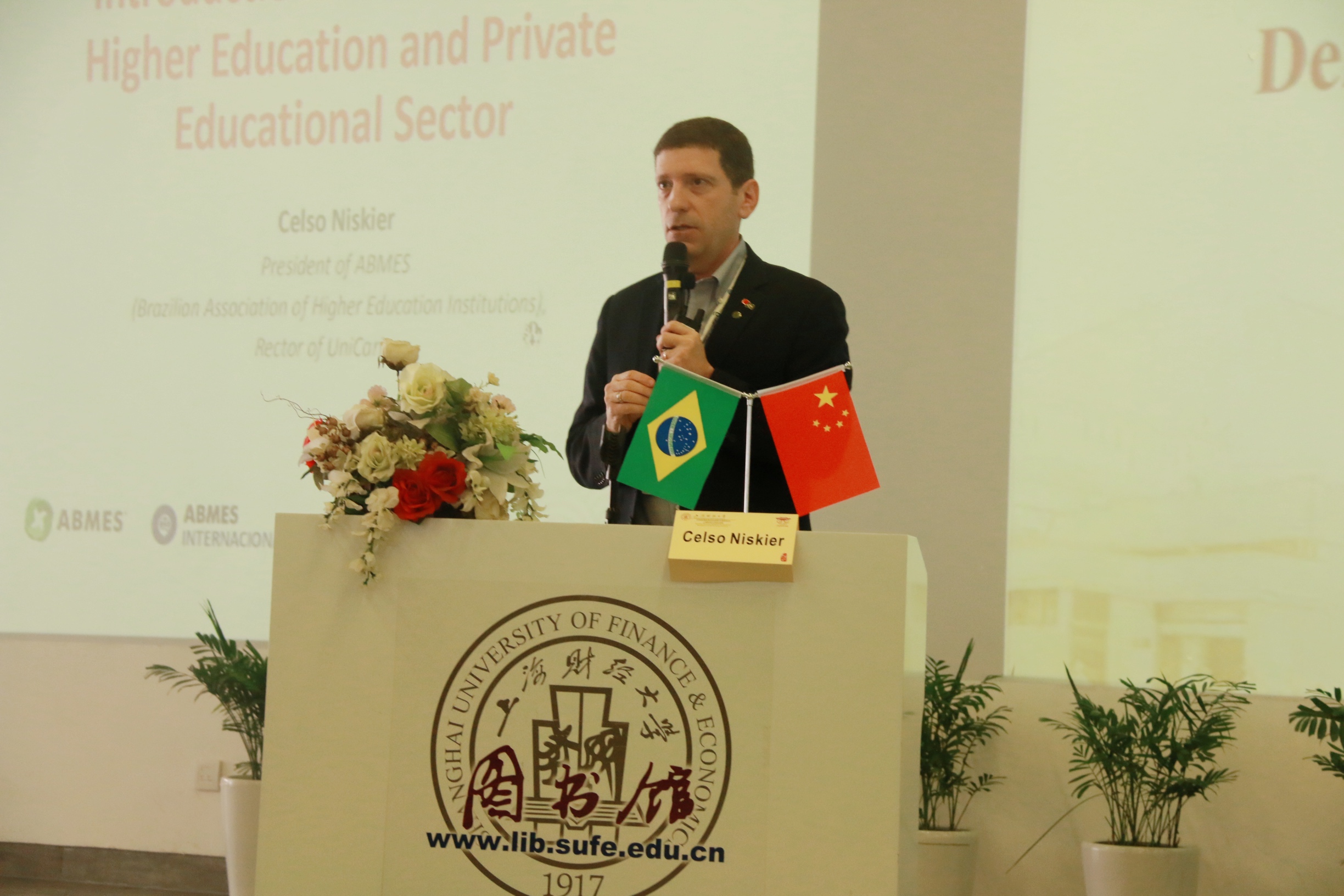ABMES国际代表团主席Celso Niskier代表巴西国际教育协会发表了讲话。Celso Niskier主席感谢法学院的邀请,并介绍了巴西私立高校的教育体制和现状。巴西高等教育由公立学校与私立学校两大部分组成,其中私立高等学校的数量占巴西总体高等教育数量的88.2%。私立高等学校的教育涵盖了本科、研究生、博士三个阶段,商科、管理、教育、工程、法学等各个专业。其中,法学是巴西私立高校中最受欢迎的专业。Celso Niskier主席希望此次交流可以促进双方学生老师之间的交流与合作。