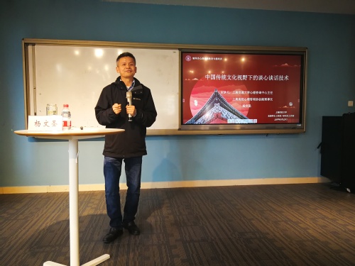 10月23日下午,上海交通大学心理咨询中心主任、上海高校心理咨询协会副理事长杨文圣副教授应邀为我校辅导员带来《中国传统文化视野下的谈心谈话技术》专题讲座,讲座在学生中心A104室举行,由学/研工部副部长方卉主持,吸引了全校20余名辅导员参加。