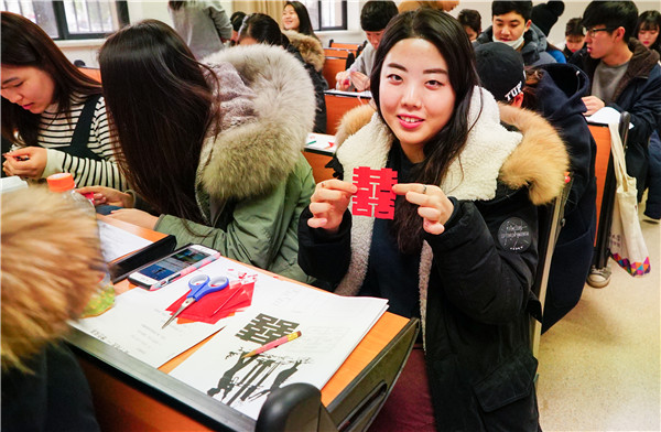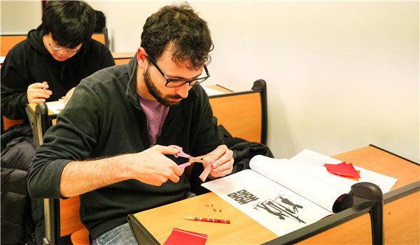 本月,国际文化交流学院邀请到剪纸、书法、面塑的专业老师来到学院,给留学生们开设了系列的文化课程。中国剪纸是一种用剪刀或刻刀在纸上剪刻花纹用于装点的民间艺术。在中国,剪纸具有广泛的应用,是各种民俗活动的重要组成部分。在剪纸艺术家杨莉莉的指导下,留学生们体验到了传统剪纸艺术的乐趣。