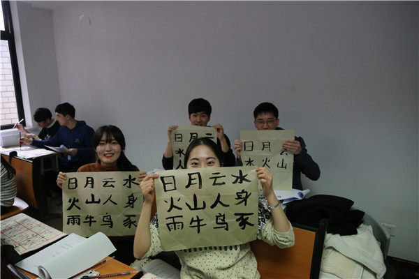 书法是中国文化特有的一种文字美的艺术表现形式,中文汉字作为一种有着艺术功能的文字,也让留学生们好奇不已。汉字学习本身就是留学生学习汉语时的一大难题,许多学生对汉字望而生畏。本月,书法老师李先荣带领留学生们体验书写文字的乐趣,让学习汉字成为了一种乐趣!