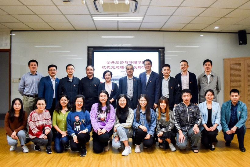10月21日晚,公共经济与管理学院举行了校友党建辅导员受聘仪式,东方证券股份有限公司副总裁、党委委员杨玉成校友;君证资本有限公司总裁、党委书记何斌校友;国新控股(上海)有限公司总经理、党支部书记田晖校友;上海复旦大学出版社副总经理、党委委员王联合校友;上海医药集团股份有限公司领导人员管理部副部长、管理一支部书记陆伟校友;上海市宝山区国有资产正处级监管员、原上海市宝山区科委(协)党组书记陈仕宏校友;虹口区北外滩街道机关党支部委员程方沂校友;上海宏铭投资有限公司总裁党员陈铭锡校友、上海投资咨询有限公司党员卜志明校友以及师生党员代表出席了本次活动。学院党委书记方芳、党委副书记周巧、学院专职组织员王斌参加授聘仪式,活动由周巧主持。