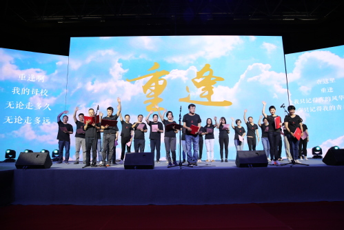 1999届企业管理班校友及他们当年的班主任张彦波老师二十年后再同台演出为大会现场带来的戴霞校友原创诗朗诵《重逢》如一杯多年浓醇美酒让现场所有返校校友都沉浸在对母校的深深眷恋之中。
