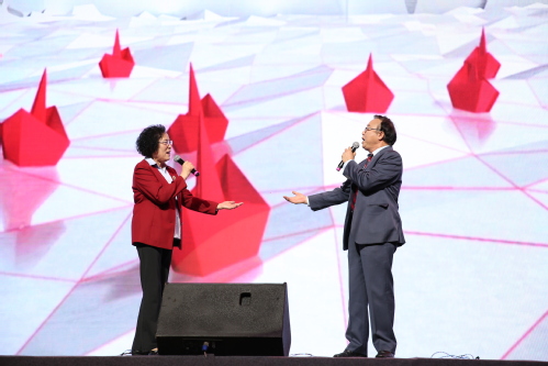 1969届财政金融系励景源校友和熊丽云校友带来的歌曲《夕阳红》将现场气氛推向了高潮,现场掌声雷动。已过七十古来稀的两位校友宝刀未老,铿锵有力的歌声无不表达了1969届所有校友的心声,那就是对母校深沉的眷恋和怀念之情。