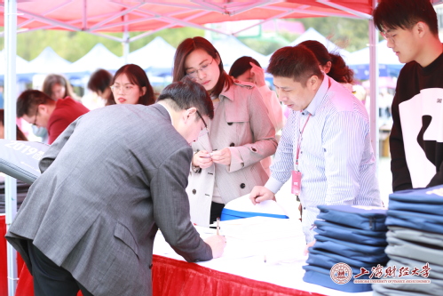在返校日活动中SUFE校友精品生活——校友企业展和行业兴趣备案校友组织招新也如火如荼地开展着,吸引了不少返校校友的关注。
