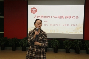 统战部部长徐萍致辞,并向各人民团体成员拜了早年,希望大家围绕学校中心工作,结合2017年百年校庆的主题,为完成学校十三五规划的各项任务作出应有的贡献。侨联主席曾坚代表主办单位向与会70余位各人民团体的朋友致以问候,预祝大家在新的一年里事业蒸蒸日上,生活幸福安康。