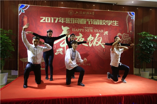 校党委副书记陈宏代表学校作新年致辞,他转达了在外出差的丛树海书记、樊丽明校长对大家的问候,并分享了过去一年学校取得的成绩和进步。他谈到2016年是令人难忘不舍的一年,但更加期待2017百年校庆的到来,鼓励大家心怀梦想并为之奋斗,实现自己的理想,他代表学校给所有春节留校的学生拜年,并举杯与在座的师生共贺新春。