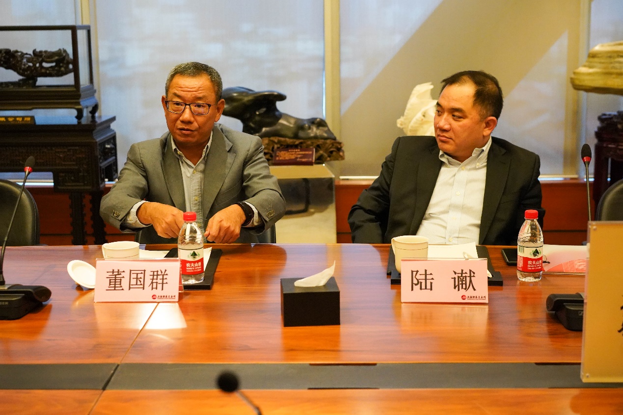 同时,校企座谈会在上交所会议室举行,上交所副总、85级统计校友和上交所信息管理部总监、87级统计校友陆谳对朱鸣雄副书记一行的到来表示了热烈的欢迎,两位学长和老师们共同回忆了校园生活,并就学院的发展,尤其是校友工作提出了更多宝贵的建议,表达了对学校各项工作的支持,希望有更多的深入交流机会,也期待学弟学妹们在未来的工作领域中取得更好的成绩,欢迎他们选择上交所这个平台。