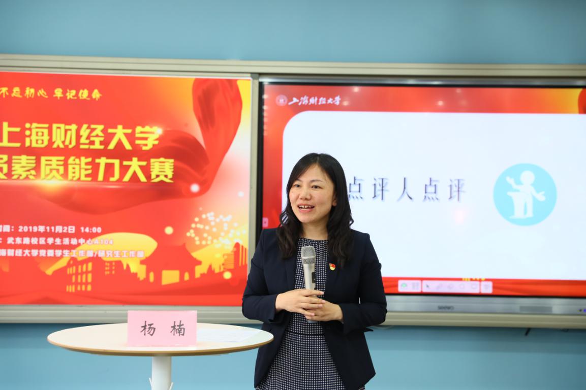 本次大赛由党委学生工作部/研究生工作部副部长方卉主持。大赛还特别邀请了华东师范大学学生工作党委书记、学工部部长余佳,校机关党委书记、党委组织部副部长郑继红,党校常务副校长、党委组织部副部长曹东勃,党委教师工作部副部长刘艳辉、学生处副处长张琴担任评委;校会计学院组织员、原上海财经大学学生工作部(处)处长唐家乾、教师教学发展中心副主任杨楠、商学院党委副书记刘兵勇做点评人。