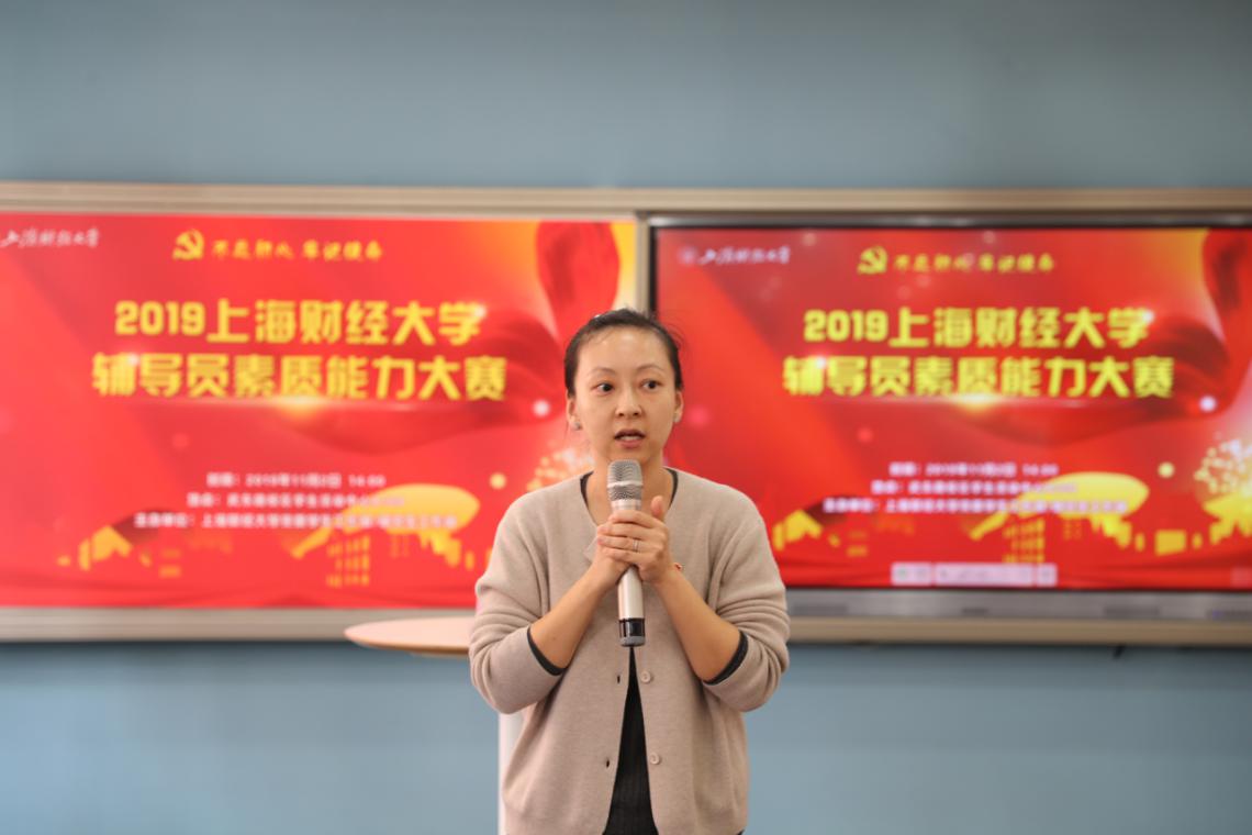 为深入贯彻落实习近平新时代中国特色社会主义思想和全国高校思想政治工作会议精神,深入推进主题教育活动,进一步坚定使命与责任、提升辅导员队伍建设水平,11月2日,校党委学生工作部/研究生工作部举办的“‘不忘初心 牢记使命’2019上海财经大学辅导员素质能力大赛”在学生活动中心A104举行。来自各学院(所)九位辅导员参赛选手自信亮相、同台共技,展现出我校辅导员队伍风采。各学院(所)分管学生工作书记以及全体辅导员现场观摩了比赛。